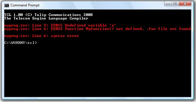 The Telecom Engine Compiler (TCL.EXE) is a command line compiler that compiles TE source code files (.TES extension) into the TE byte-code (.TEX extension), which can then be executed by the TE Run-Time Engine.